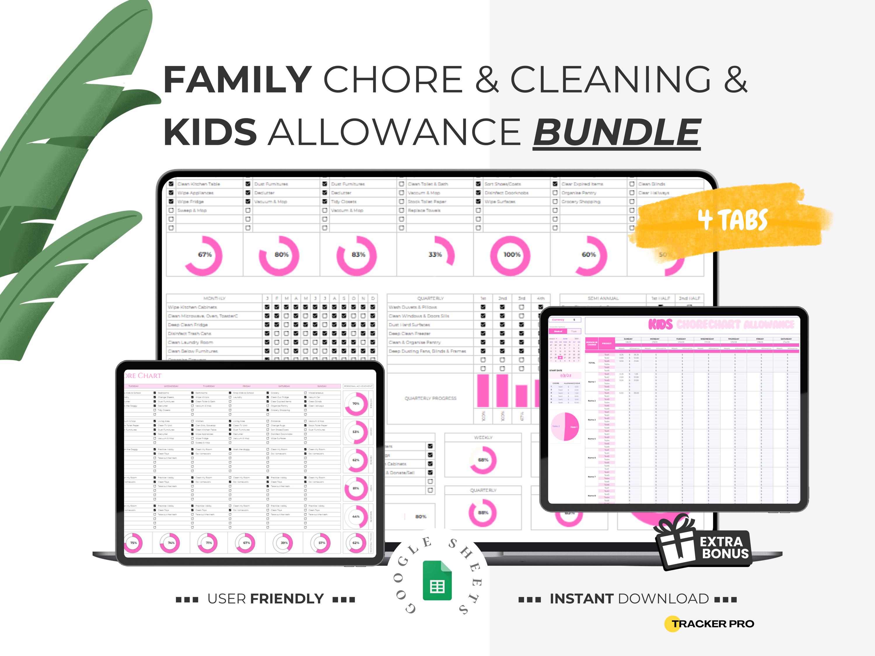 Bundle Family Chore Chart Allowance Google Sheets Planner Cleaning