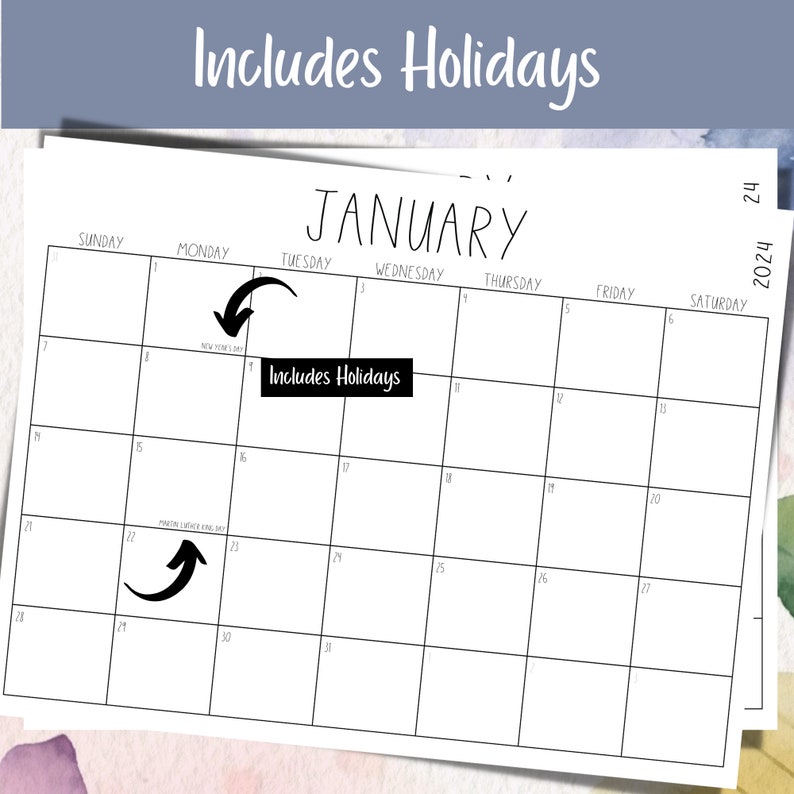 Editable January Calendar 2024 Printable Wall Calendar 2024 Cute
