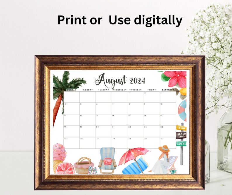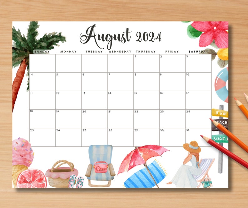 EDITABLE August 2024 Calendar Printable Wall Calendar 2024 Cute