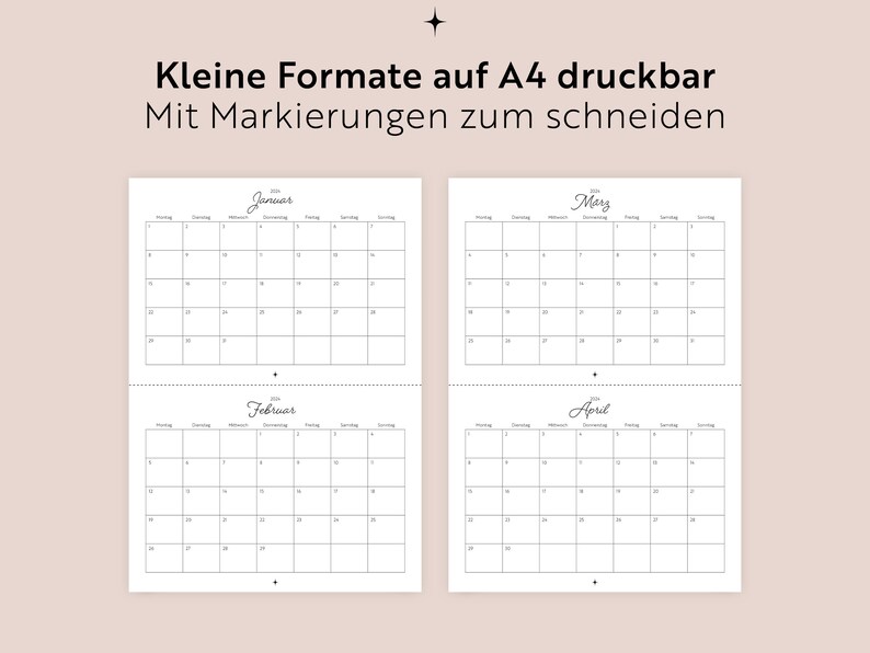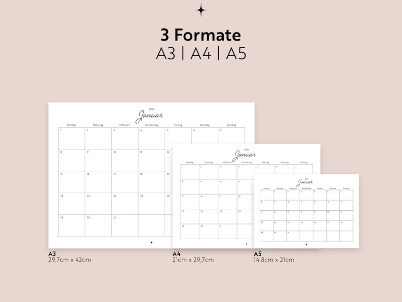 Calendar 2024 A3 A4 A5 Fillable PDF to Print German Printable Wall