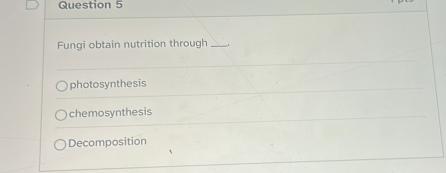 Solved: Fungi obtain nutrition through photosynthesis chemosynthesis