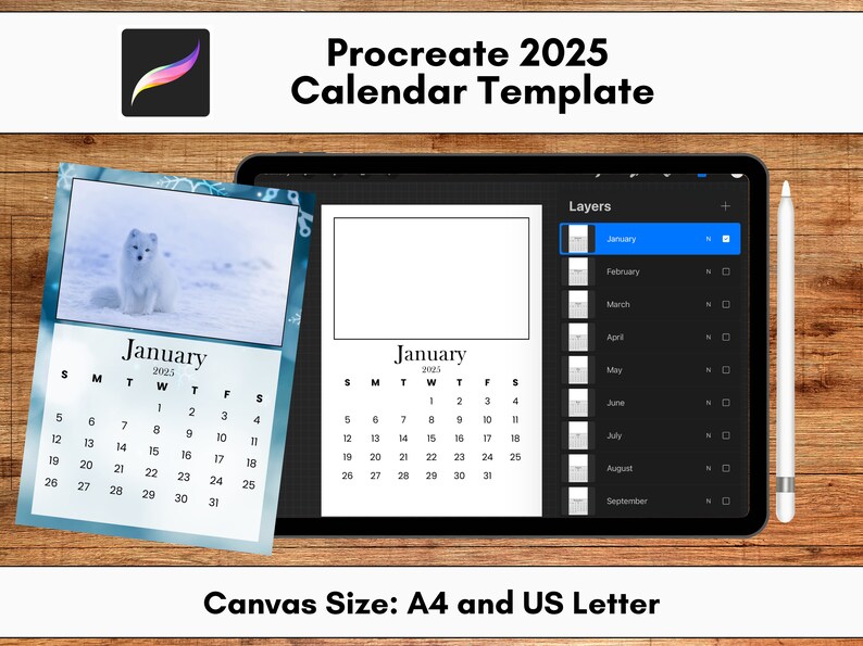 2025 Calendar Procreate Bundle Templates in US Letter and A4 Sizes 8