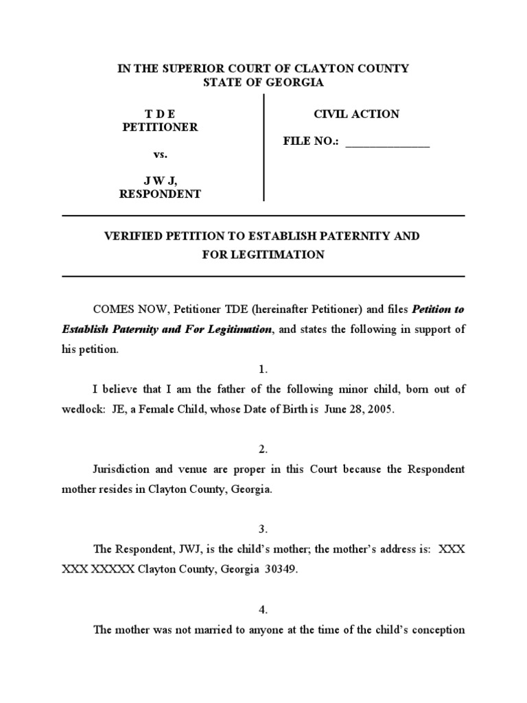 Petition To Establish Paternity and For Legitimation PDF Parent