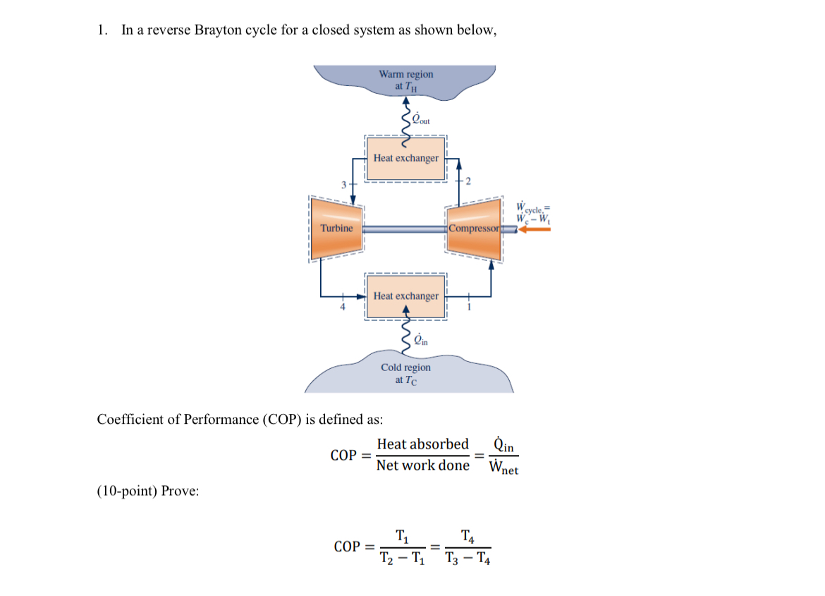 Solved In a reverse Brayton cycle for a closed system as Chegg com