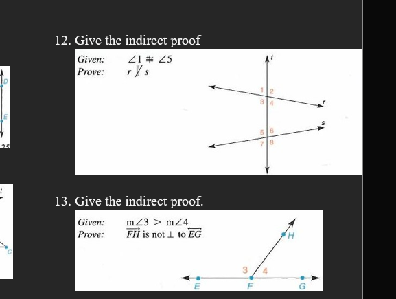 Solved 12 Give the indirect proof Given: ∠1 =∠5 Prove: r ys Chegg com