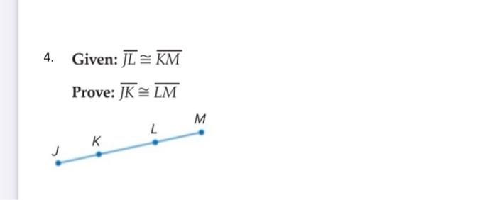 Solved 4 Given: JL = KM Prove: JK =LM M 2 K J Chegg com