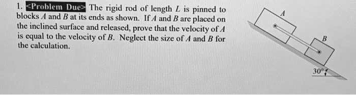 SOLVED: The rigid rod of length L is pinned to blocks A and B at its