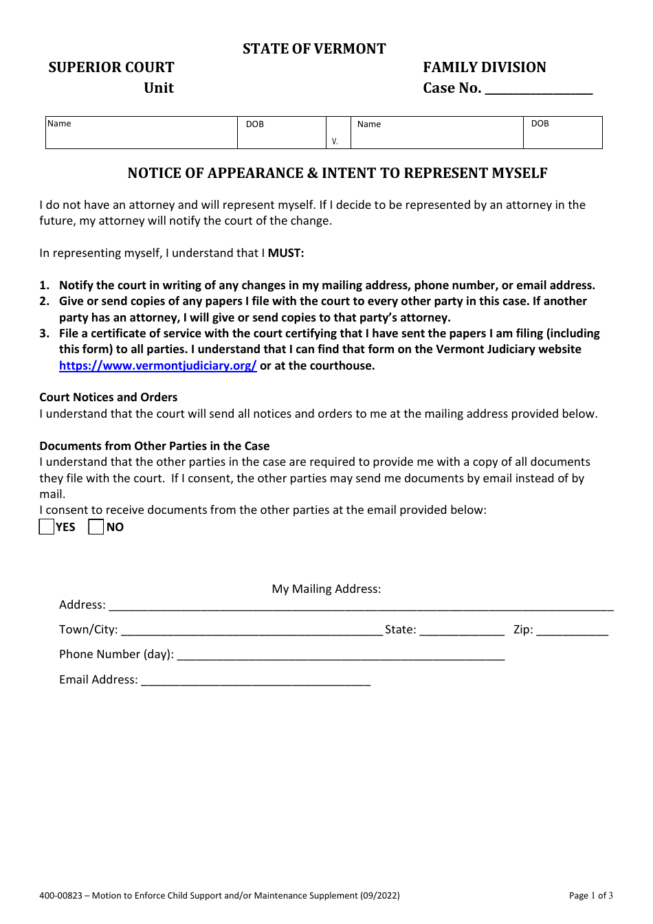 Entry Of Appearance As A Self Represented Party Court Of Common Pleas