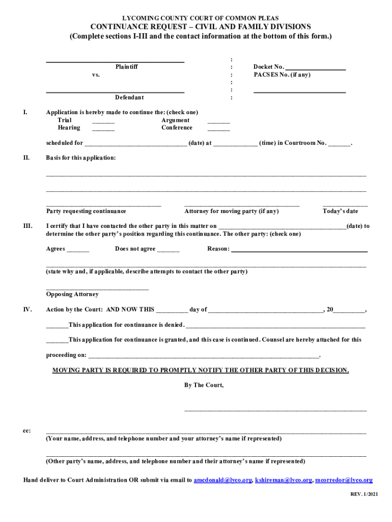 Cambria County Civil Continuance Form Civil Form 2023