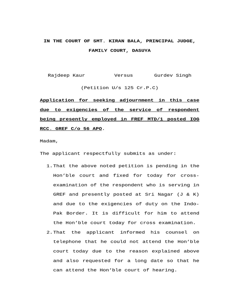 Adjournment Request in Family Court Case PDF