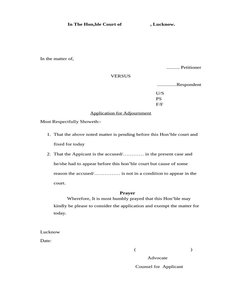 How to write Adjournment Application For the Court case Draft