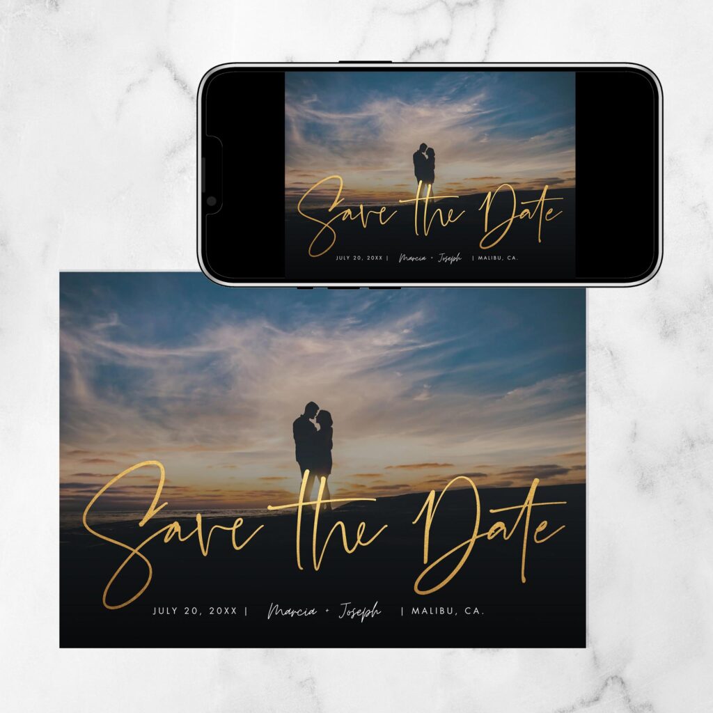 Modern Handwriting Faux Gold Photo Save The Date Canva Template Becky