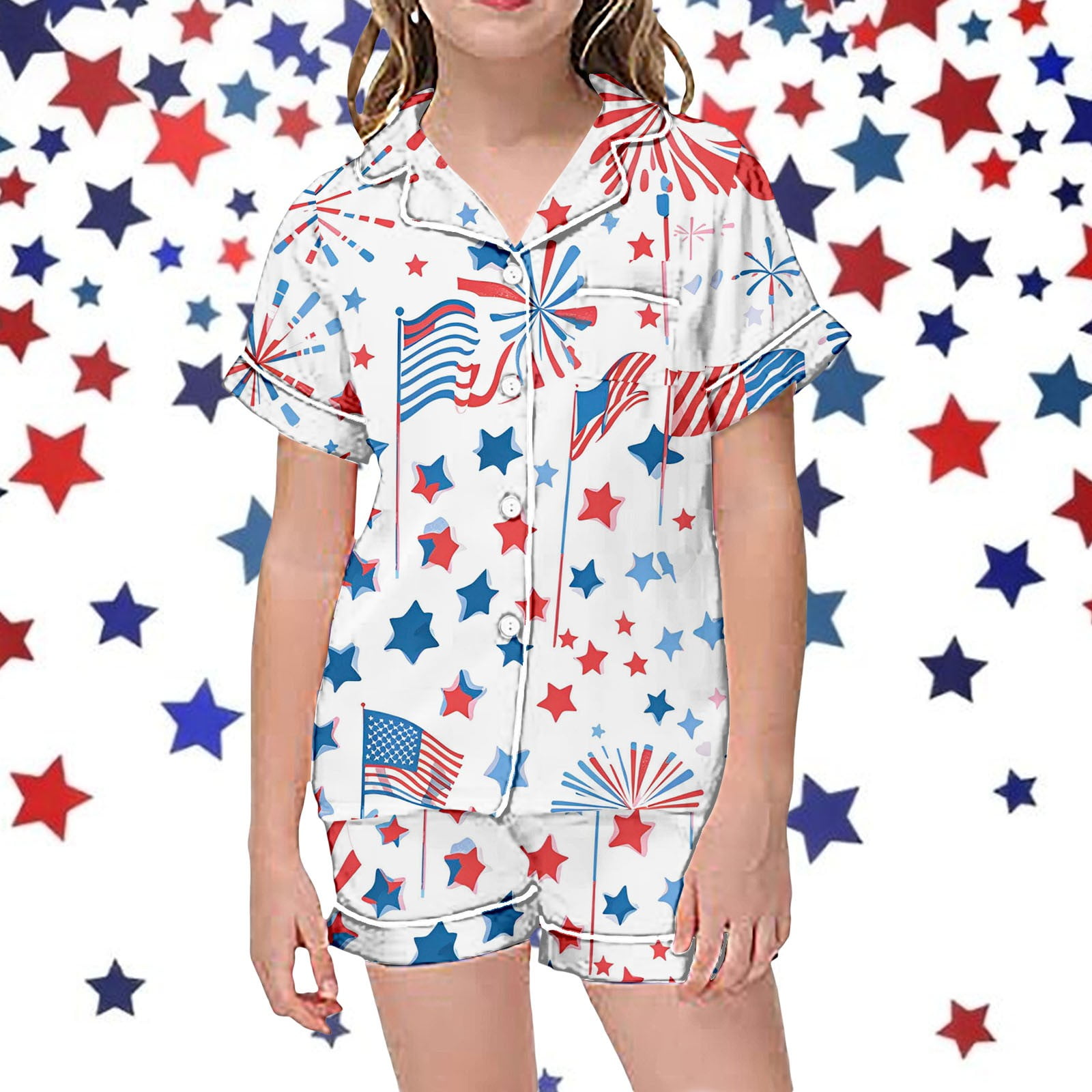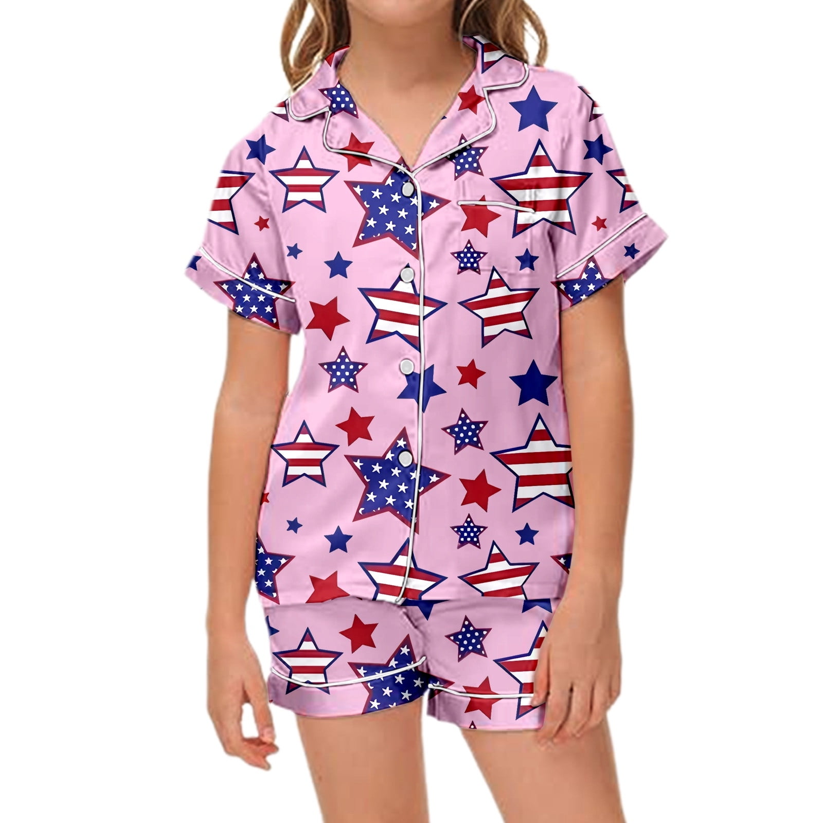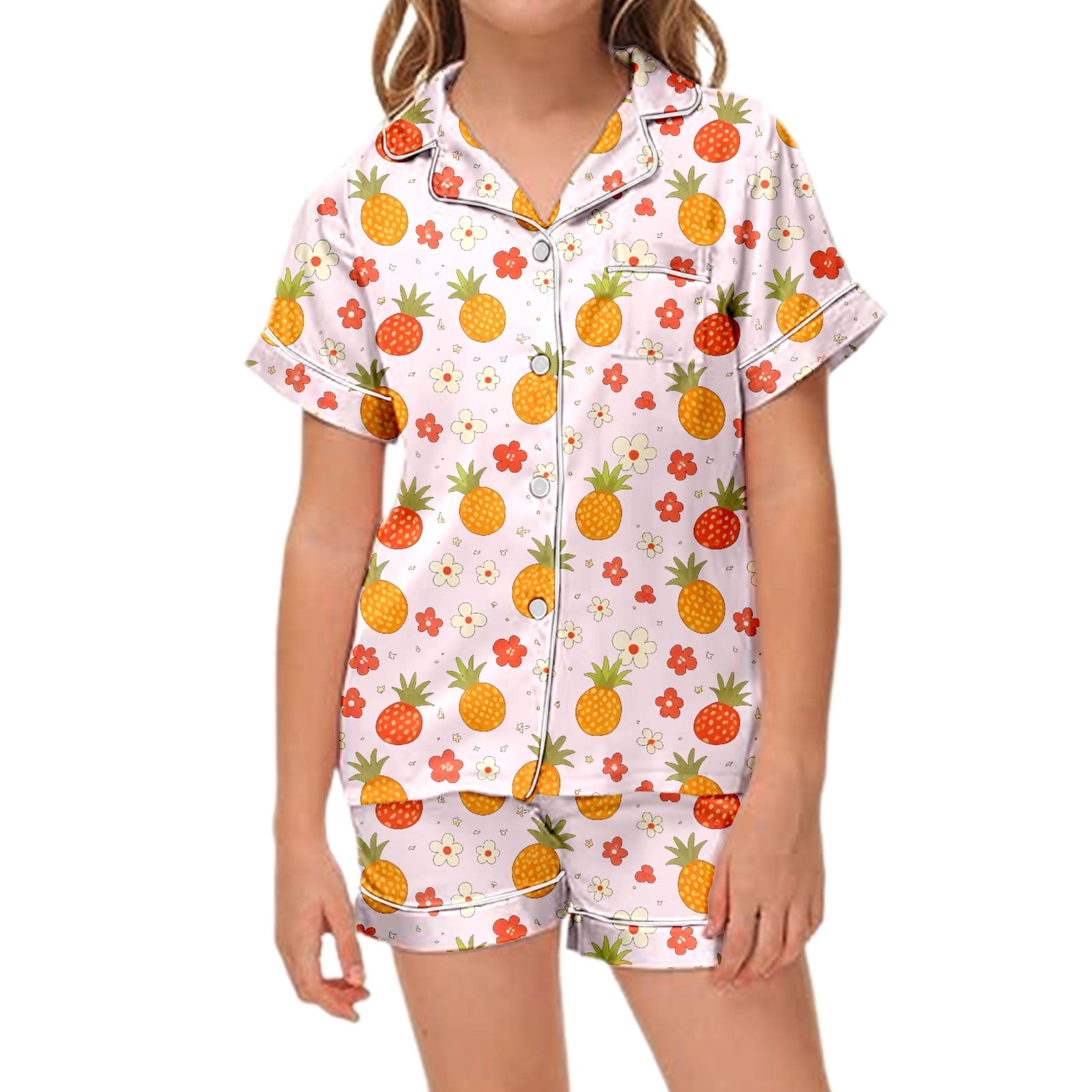 Boy Pajama Set Cartoon Prints Button Down Homewear Set Girls #39 Fashion