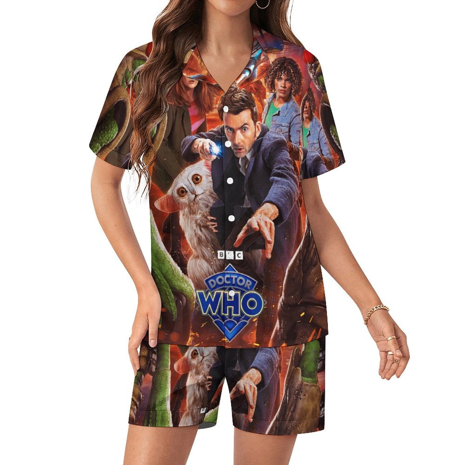 Doctor Who Women Pajamas Set Short Sleeve Sleepwear Button Down