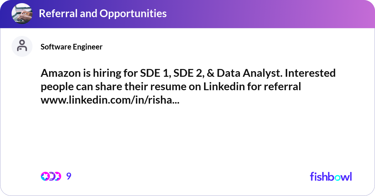 Amazon is hiring for SDE 1 SDE 2 Data Analyst Fishbowl