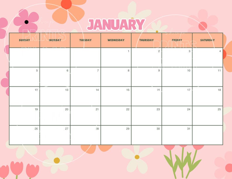 2025 Monthly Calendar Digital Download Floral Girly Pink Calendar
