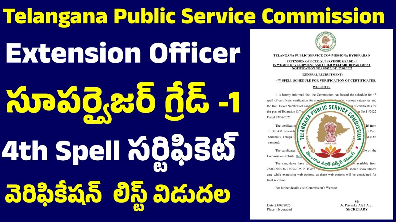 👌 TGPSC Extension Officer Supervisor Grade l 4th Spell Certificate