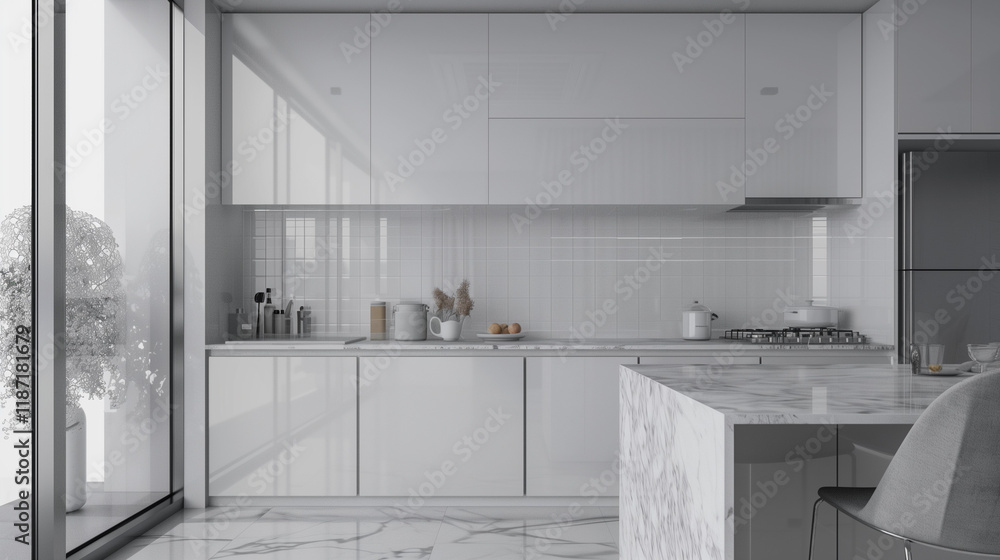 Modern kitchen splashback mockup Kitchen furniture and empty