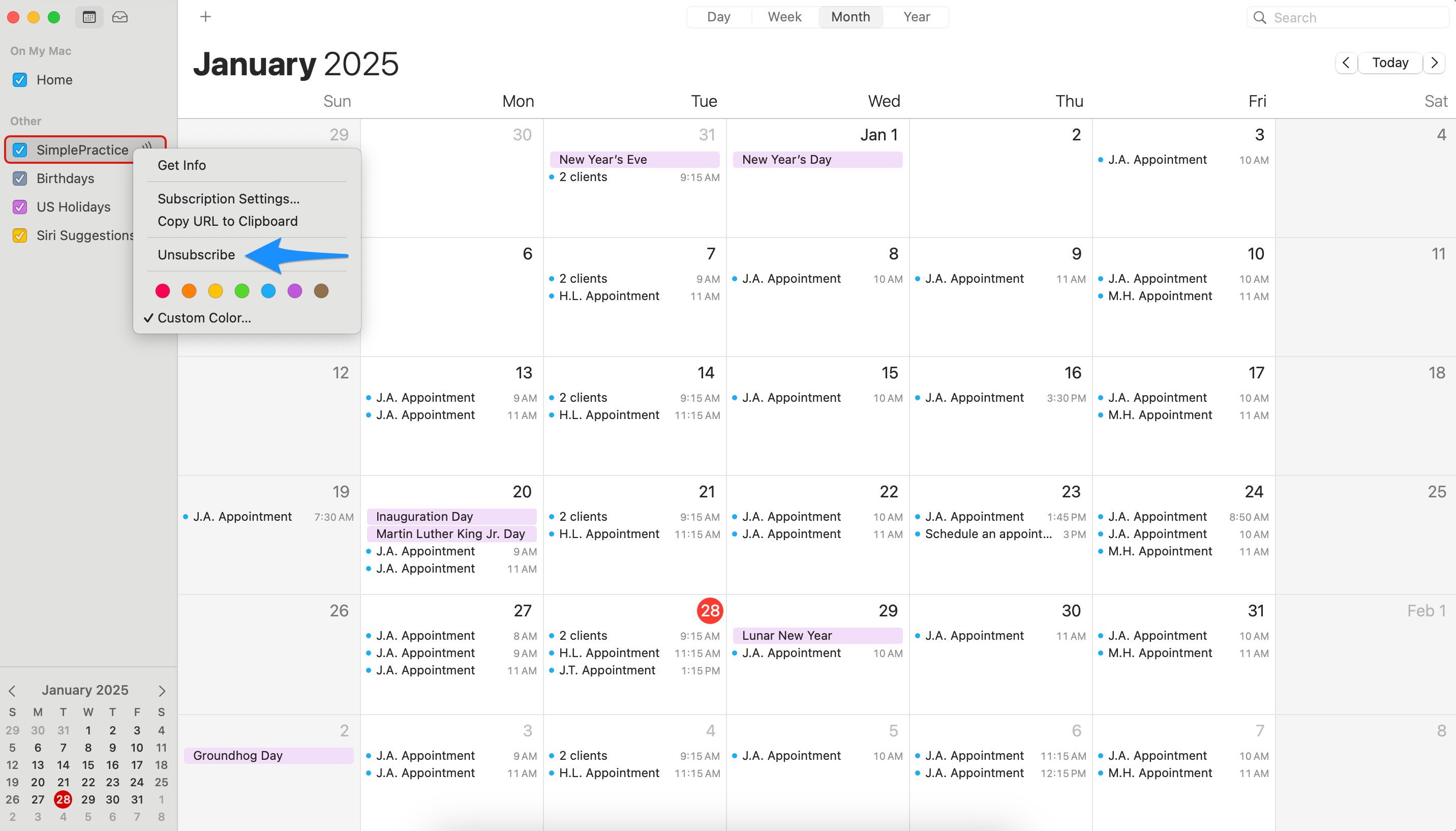 Managing calendar sync for Apple Calendar SimplePractice Support