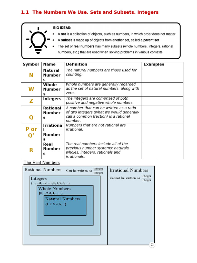 1 1 the Numbers We Use sets and Subsets rational Numbers PDF
