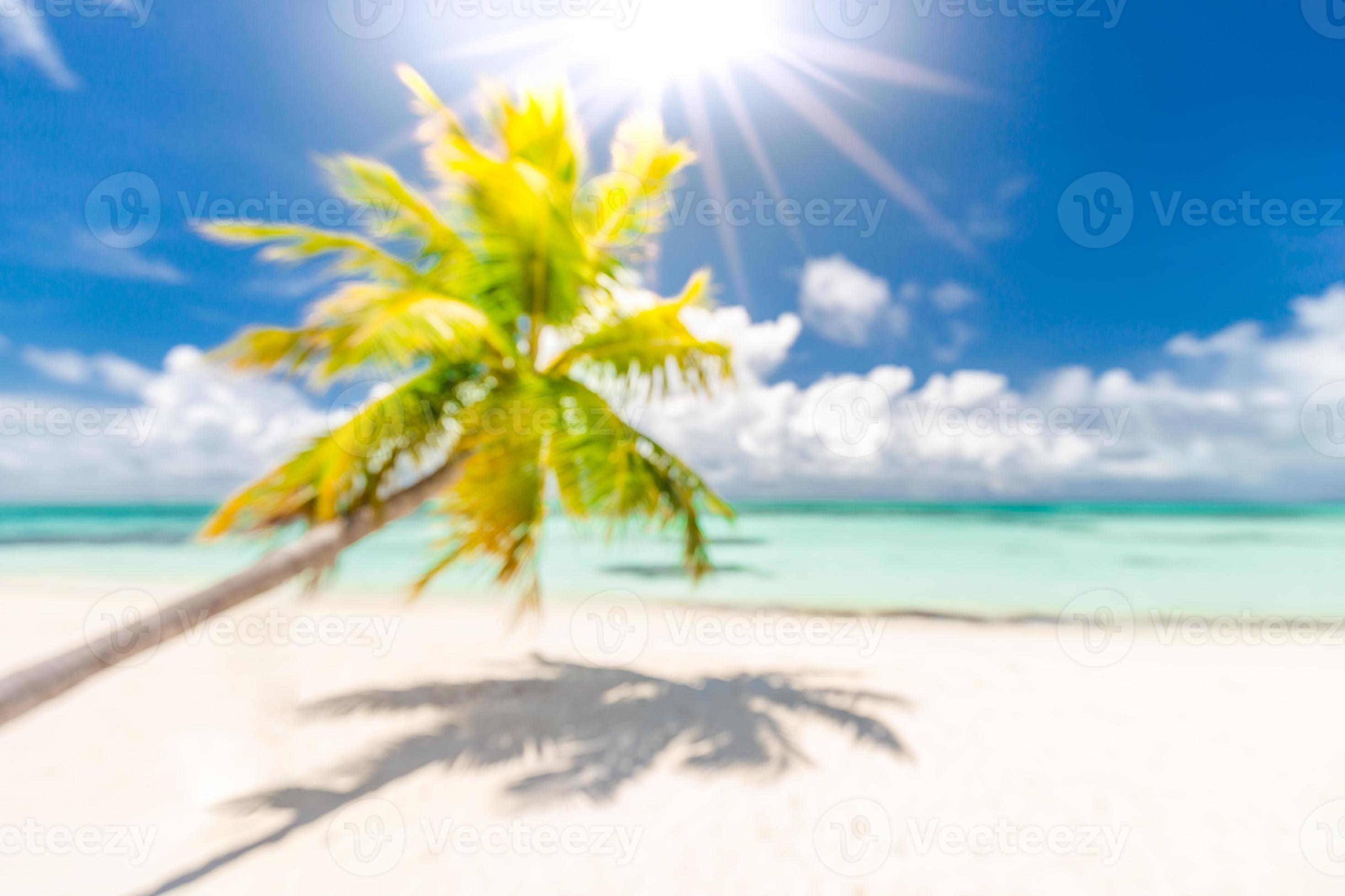 Beautiful blur beach green palm leaf tree sunny weather sun rays