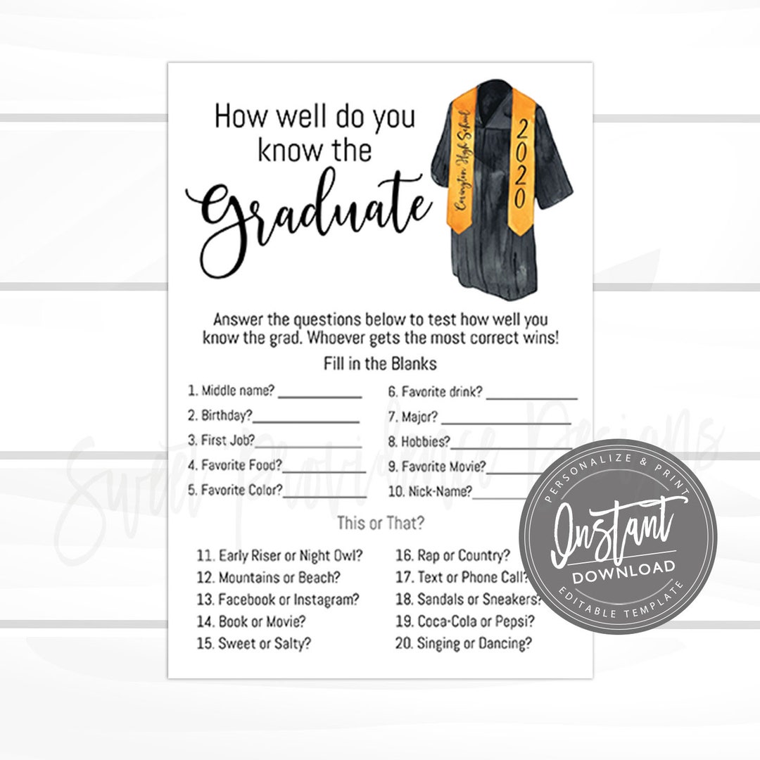 How Well Do You Know the Graduate Graduation Party Game Etsy