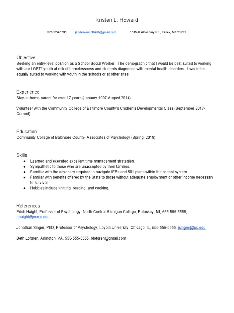 Howard Resume Template prntbl concejomunicipaldechinu gov co