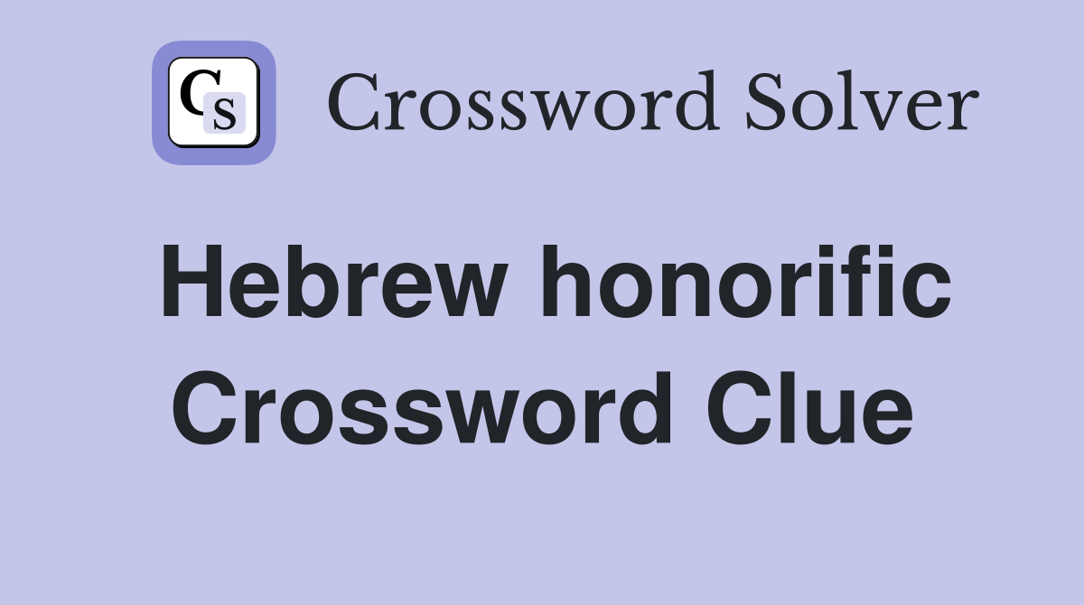 Hebrew honorific Crossword Clue Answers Crossword Solver