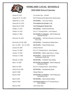 Howland Local Schools Calendar 25 26 Revised PDF EduCounty