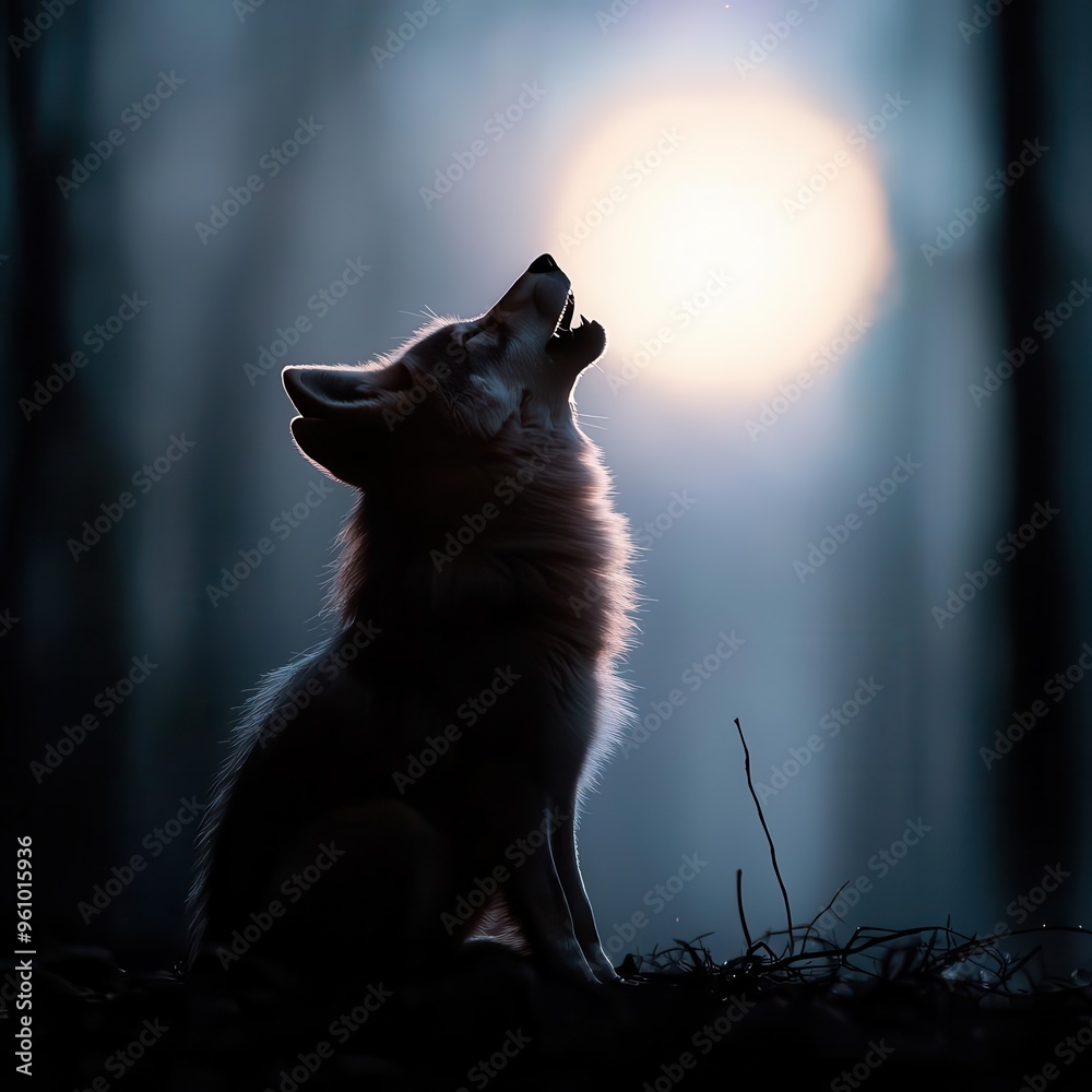 Premium Vector Wolf howled under the moonlit night