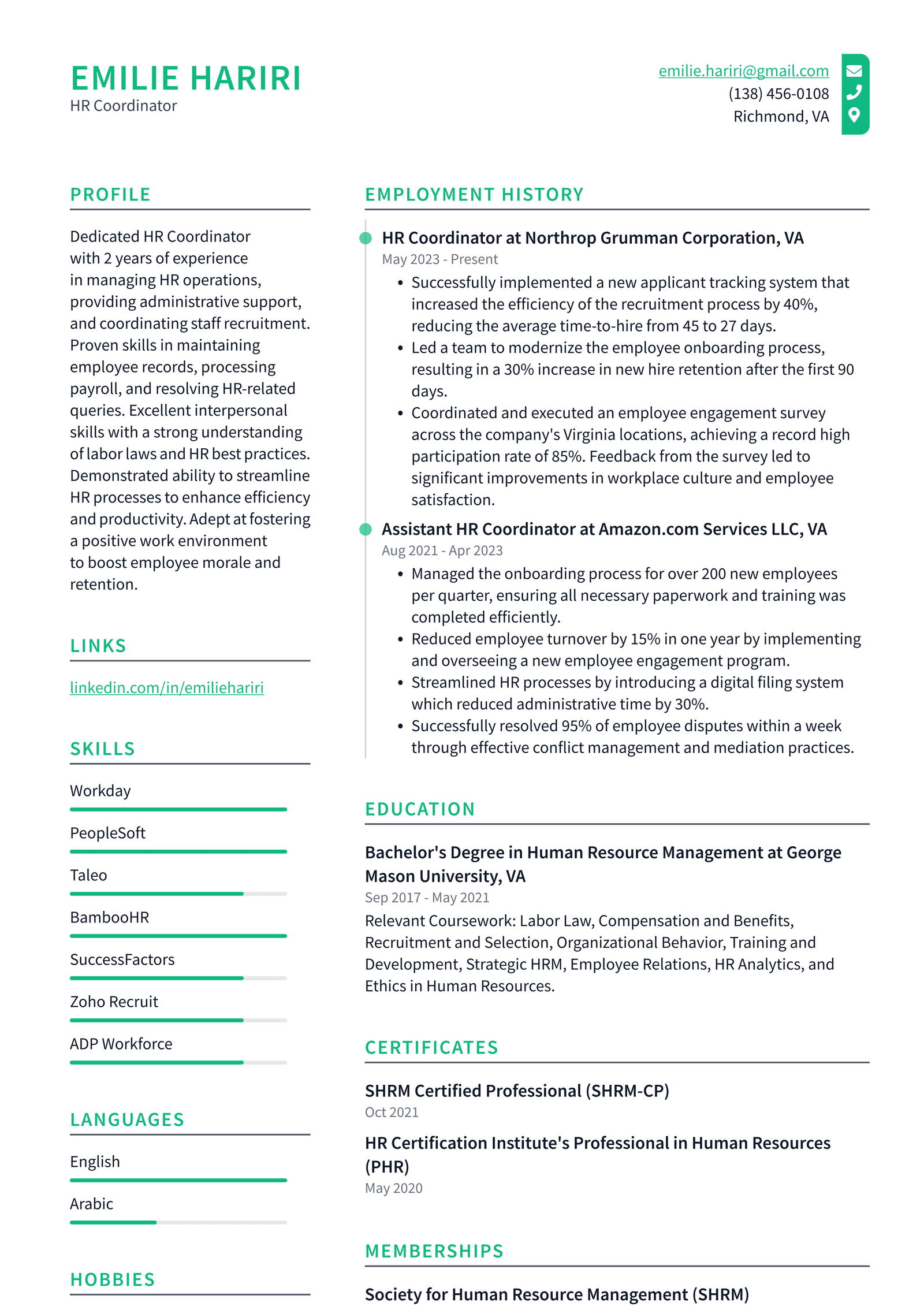 HR Coordinator Resume Template