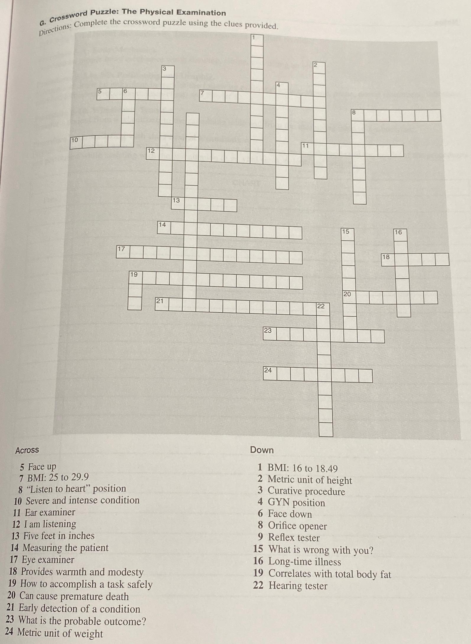 Solved G Crossword Puzzle: The Physical Chegg com