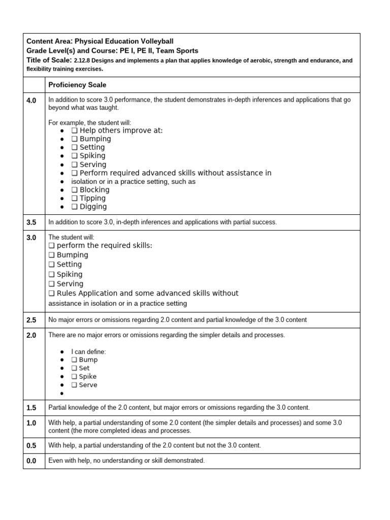 Volleyball HS Fitness Proficiency Scale Strama PDF