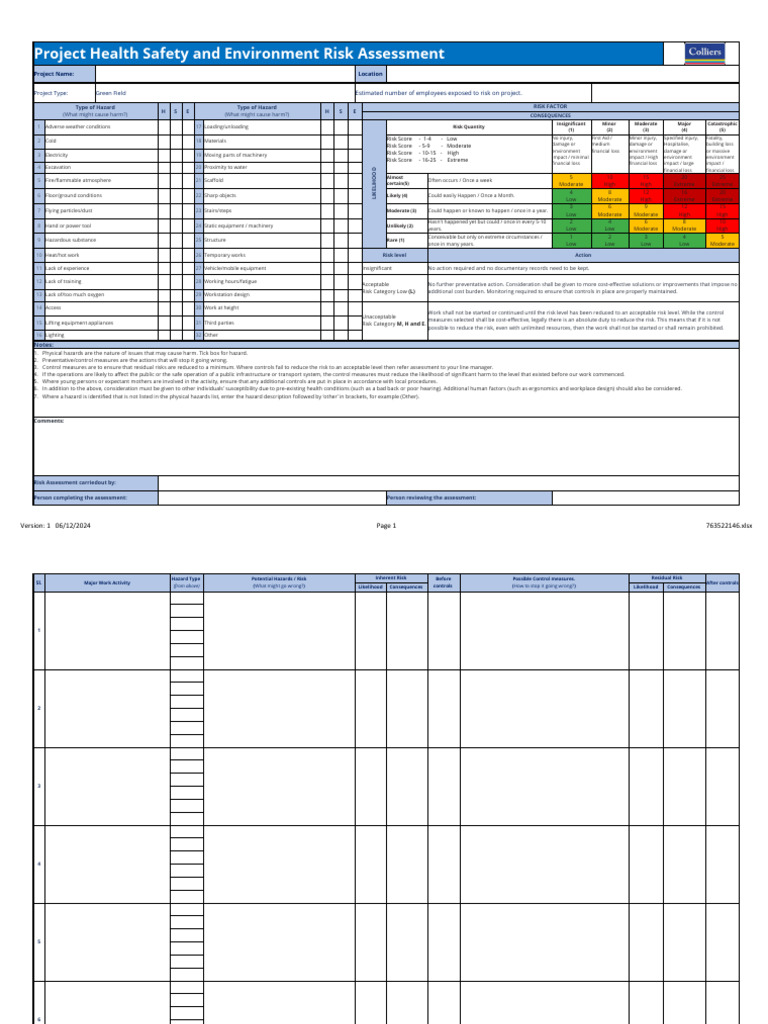 HSE Risk Assessment Download Free PDF Risk Hazards