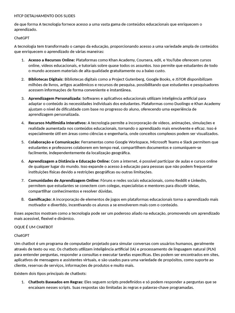 HTCP Detalhamento Dos Slides PDF Inteligência artificial