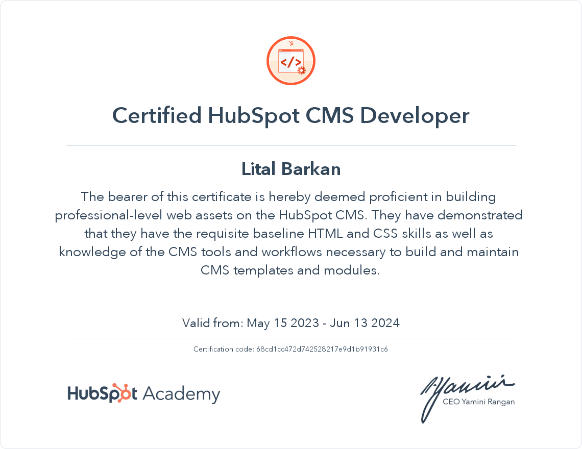 HubSpot Academy HubSpot CMS for Developers Certification