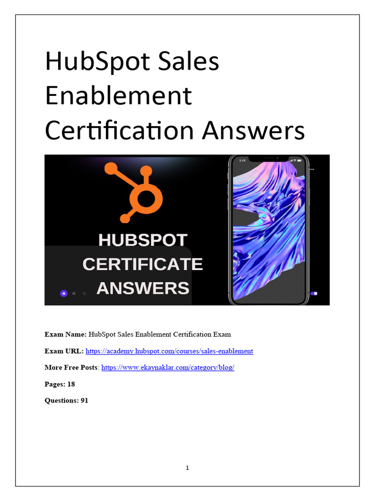 HubSpot Sales Enablement Certification Answers Guide · PartnerExam