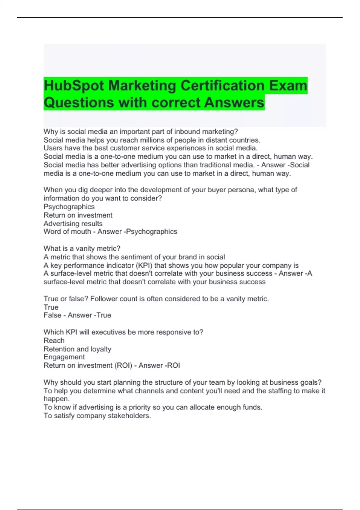 Hubspot Inbound Marketing Exam Questions With Correct Answers HubSpot