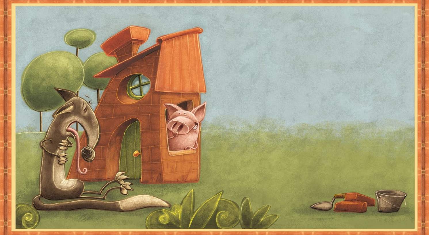 So the wolf huffed and he puffed then he puffed and he huffed