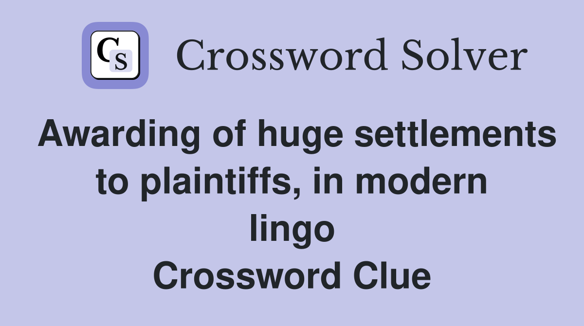 Awarding of huge settlements to plaintiffs in modern lingo Crossword