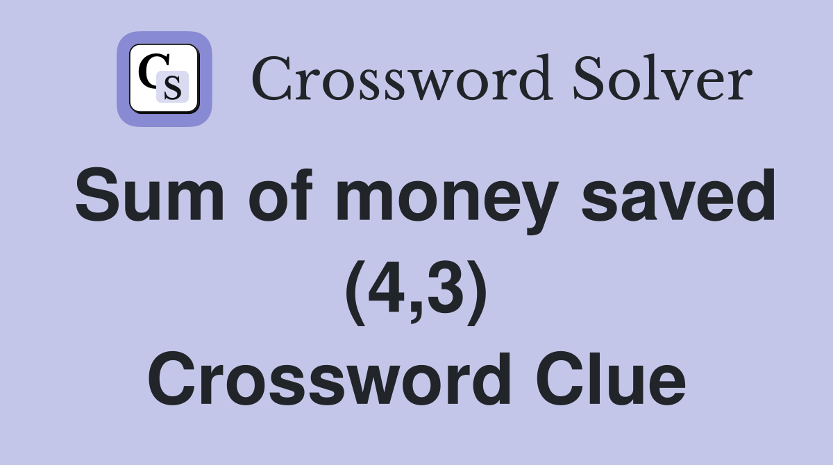 Sum of money saved (4 3) Crossword Clue Answers Crossword Solver