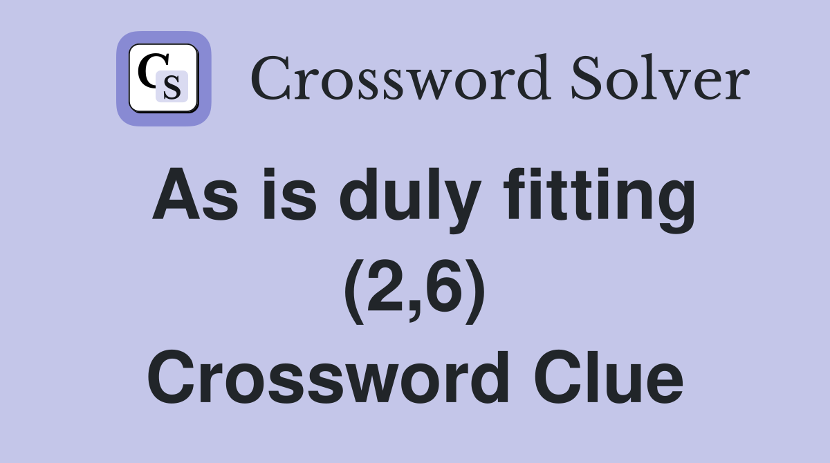 As is duly fitting (2 6) Crossword Clue Answers Crossword Solver