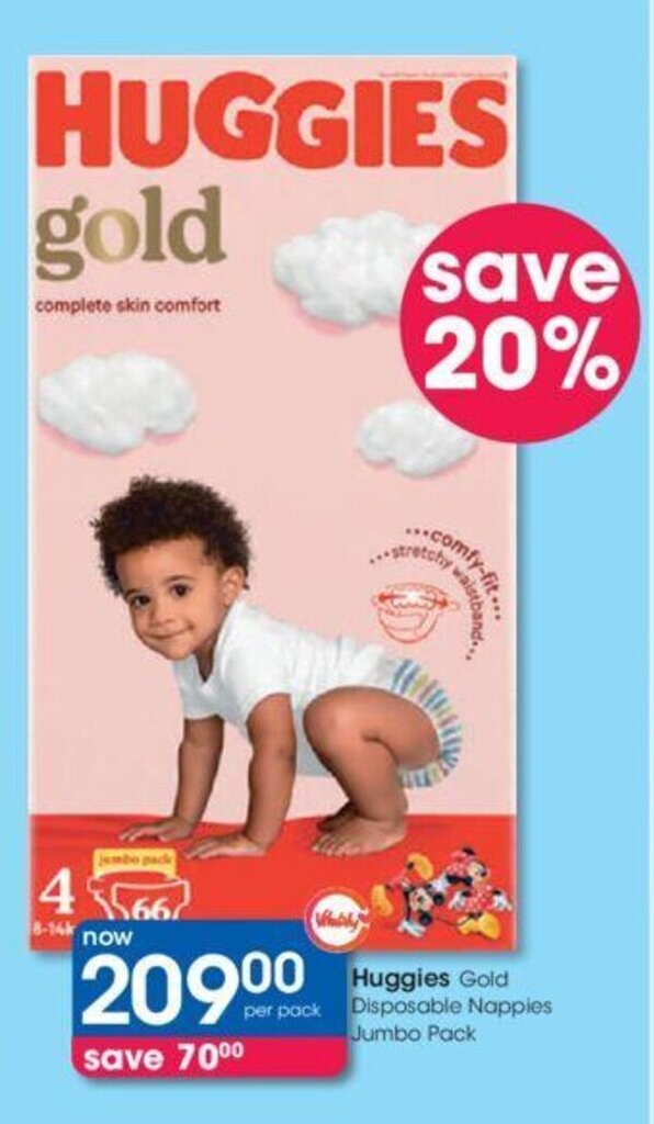 Huggies Gold Disposable Nappies Jumbo Pack offer at Clicks
