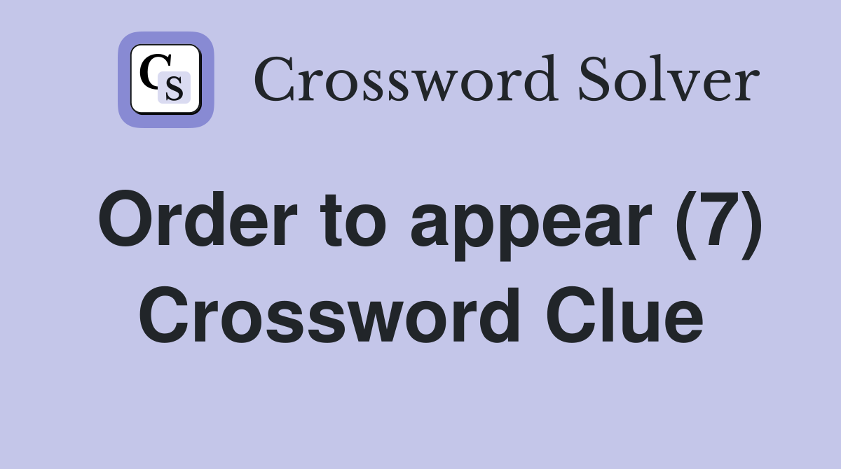 Order to appear (7) Crossword Clue Answers Crossword Solver