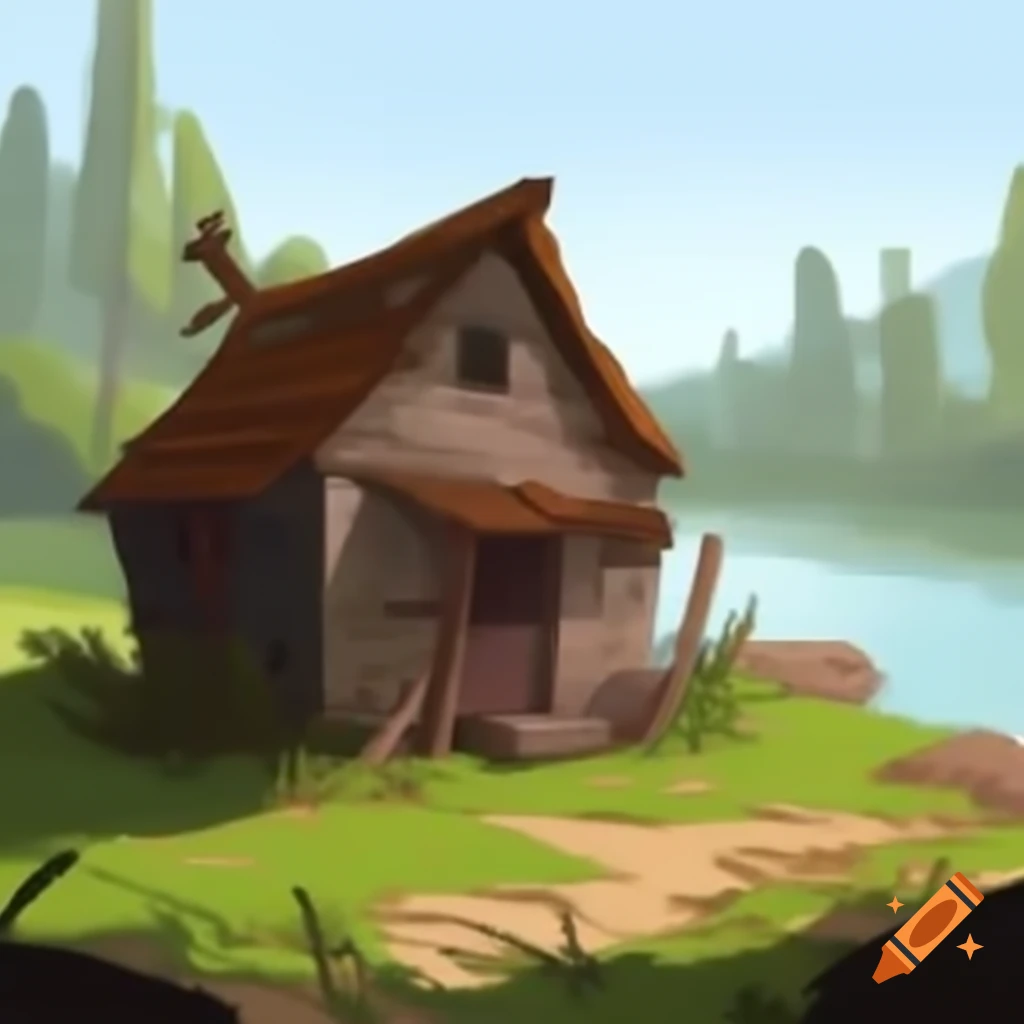 Weathered dwelling by serene riverside on Craiyon