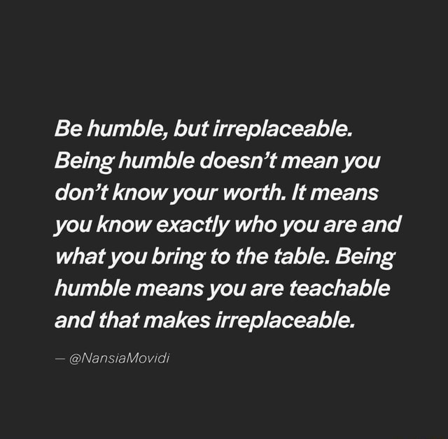 Be humble but irreplaceable Being humble doesn #39 t mean you don #39 t know
