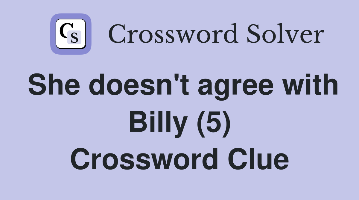 She doesn #39 t agree with Billy (5) Crossword Clue Answers Crossword