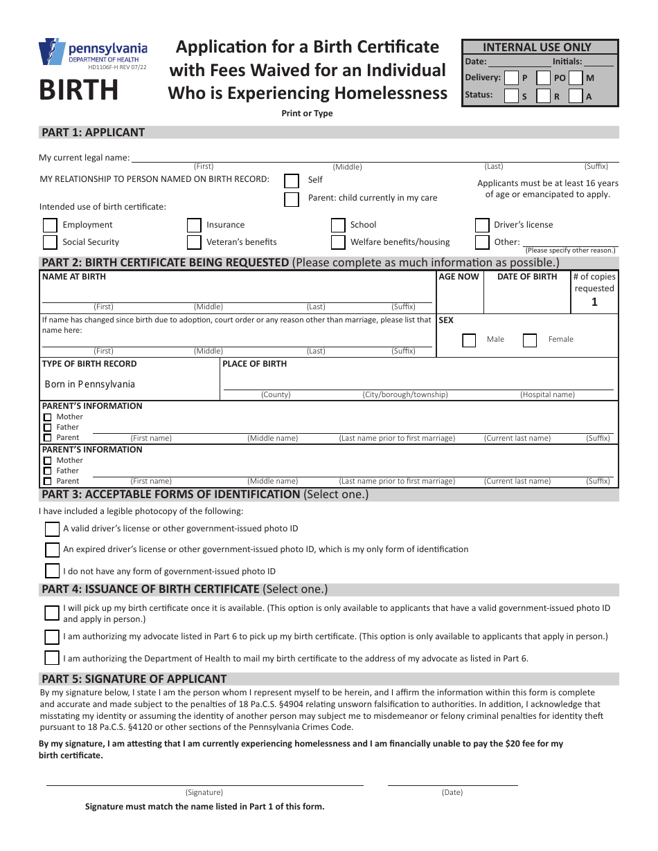 Form HD1106F H Download Fillable PDF or Fill Online Application for a