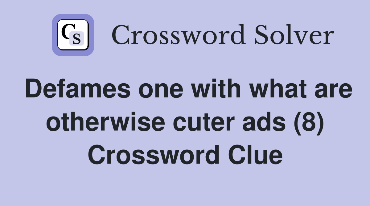Defames one with what are otherwise cuter ads (8) Crossword Clue
