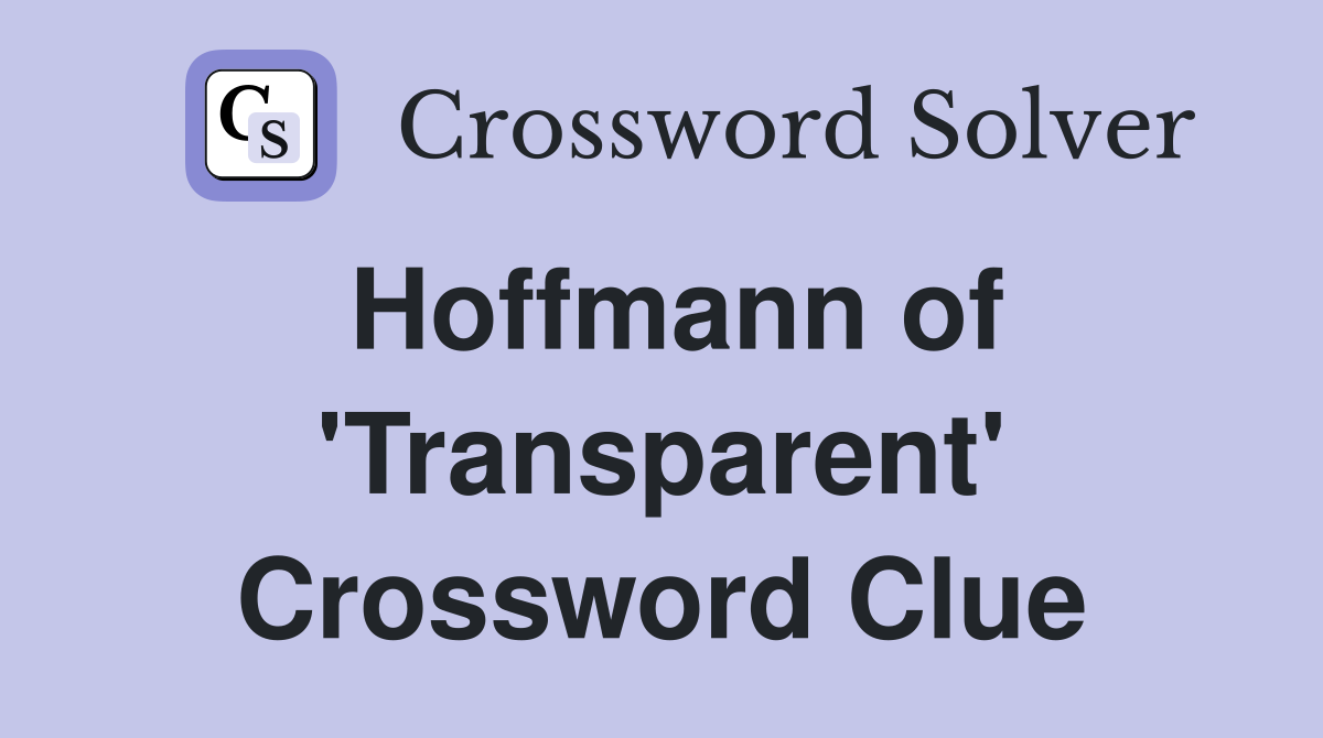 Hoffmann of #39 Transparent #39 Crossword Clue Answers Crossword Solver